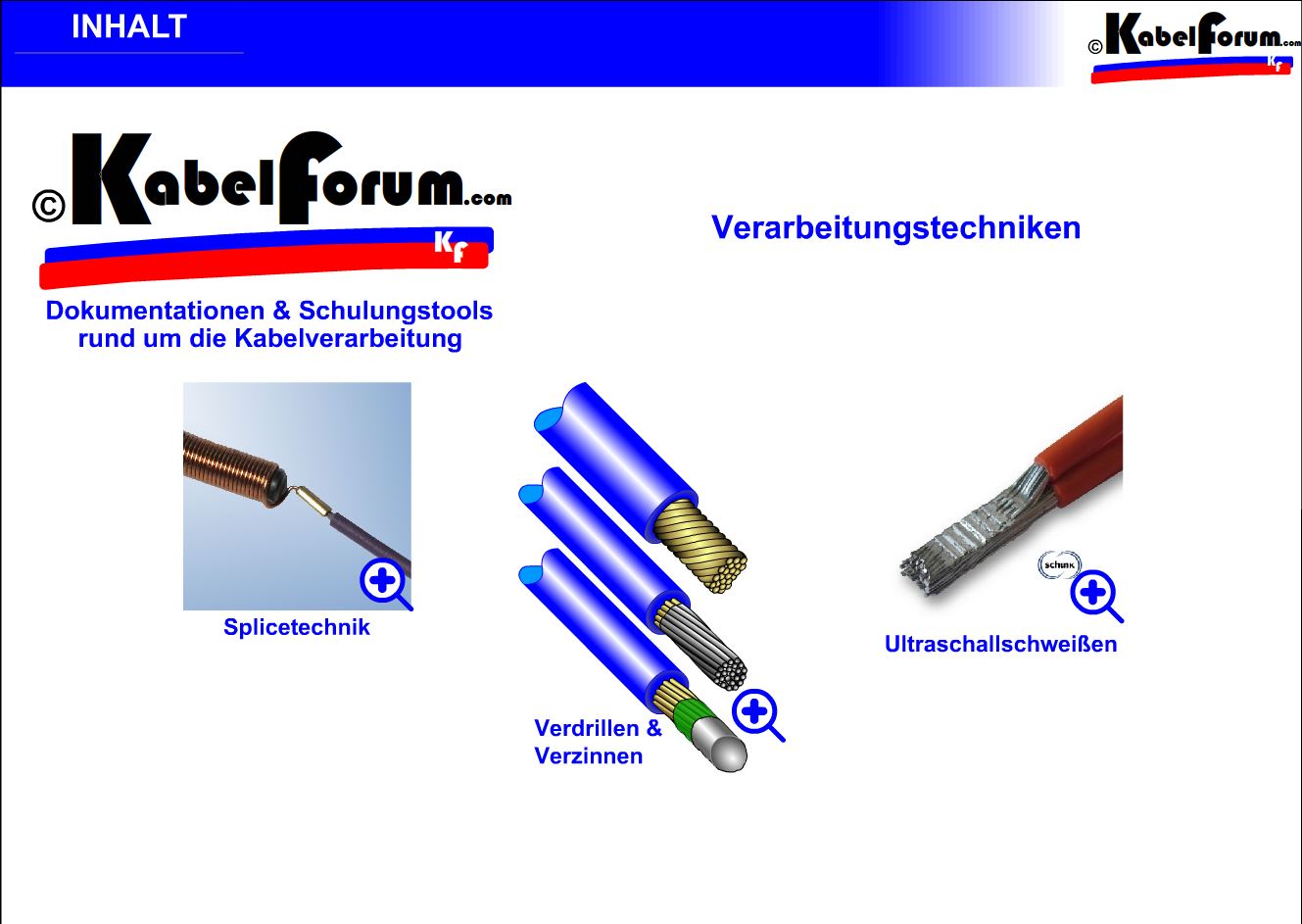 Durch den interaktiven Aufbau des Schulungstools können Sie die einzelnen Anwendungsdateien wie in einem Buch durchblättern, allerdings als Anwendung auf Ihrem Computer. Ein Inhaltsverzeichnis ermöglicht es, bestimmte Themen auszuwählen oder innerhalb der Themen einfach vor- und zurückzuspringen. Animationen zeigen schematische Darstellungen von Vorgängen wie z.B. das Abisolieren von Leitungen, etc.