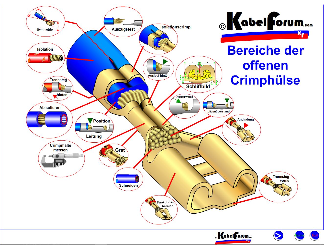 - Anwendung "Crimp Technik": Grundlagen der Kabelverarbeitung. Aus dieser Anwendung heraus können alle Anhänge und Schulungstools gestartet werden.